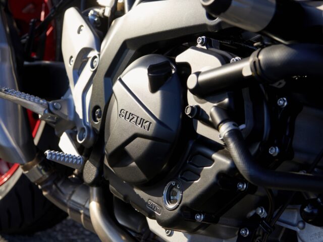 Onder de gestroomlijnde kuip klopt een bekende hart van Suzuki: de 645 cm³ 90° V-twin die je ook vindt in de SV650 en V-Strom 650. In de SV-7GX is het blok verder verfijnd met moderne technologie zoals Ride-by-wire, drie rijmodi, tractiecontrole en een Bi-directional Quick Shifter voor schakelen zonder koppeling.